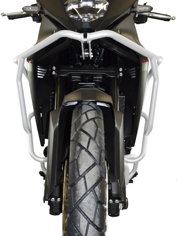 Šiame rinkinyje yra viršutiniai ir apatiniai avariniai strypai ir užtikrina visišką jautrių motociklo dalių apsaugą. Viršutinis vamzdynas apsaugo gaubtus ir aušintuvą, o apatinis - variklį ir apatines motociklo dalis.