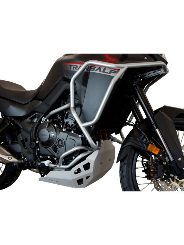 Sidabrinės spalvos apsauginių lankų komplektas skirtas „Honda XL 750 Transalp“ motociklams, pagamintiems nuo 2023 iki 2024 metų.